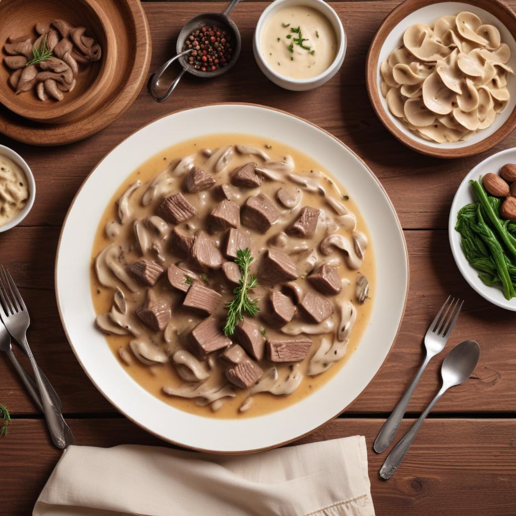 Еще одна интересная вариация — блюдо на основе куриного или индюшиного филе вместо говядины, что делает рецепт более лёгким и подойдет тем, кто предпочитает диетическое питание. В постных вариантах мясо заменяют на грибы или вегетарианские белковые продукты, а сметану — на растительные сливки. Такие вариации делают бефстроганов доступным для широкой аудитории и позволяют экспериментировать с вкусовыми сочетаниями.