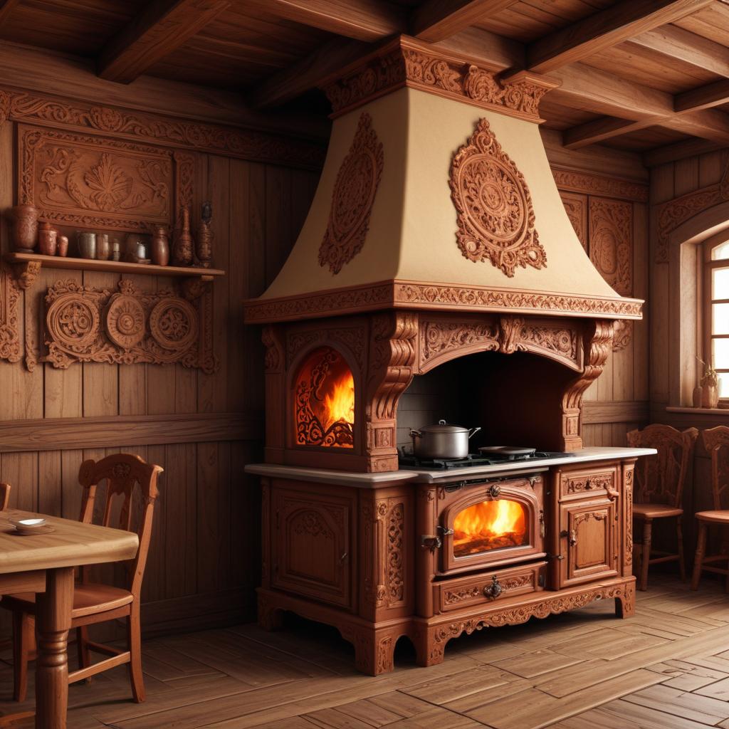 Традиционный интерьер русской избы — это гармоничное сочетание удобства и народного искусства, создающее атмосферу тепла и уюта. Центральное место занимает деревянная мебель, выполненная из сосны или ели, зачастую украшенная резьбой с растительными узорами. Столы, лавки и сундуки из массива дерева придают помещению прочность и естественную красоту, при этом сохраняя историческую аутентичность.